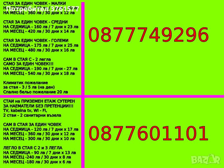 СТАИ СЕ ЗАПАЗВАТ САМО С КАПАРО 50 лв!!!