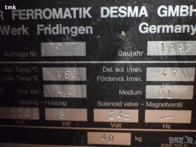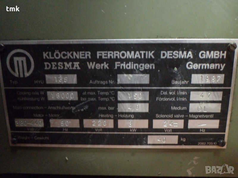 2бр. нови, неупотребявани темпериращи хидравлични станции на фирма Desma служещи за загряване и поддържане на определена температура за маслото на шпинделите за шлайфовете.