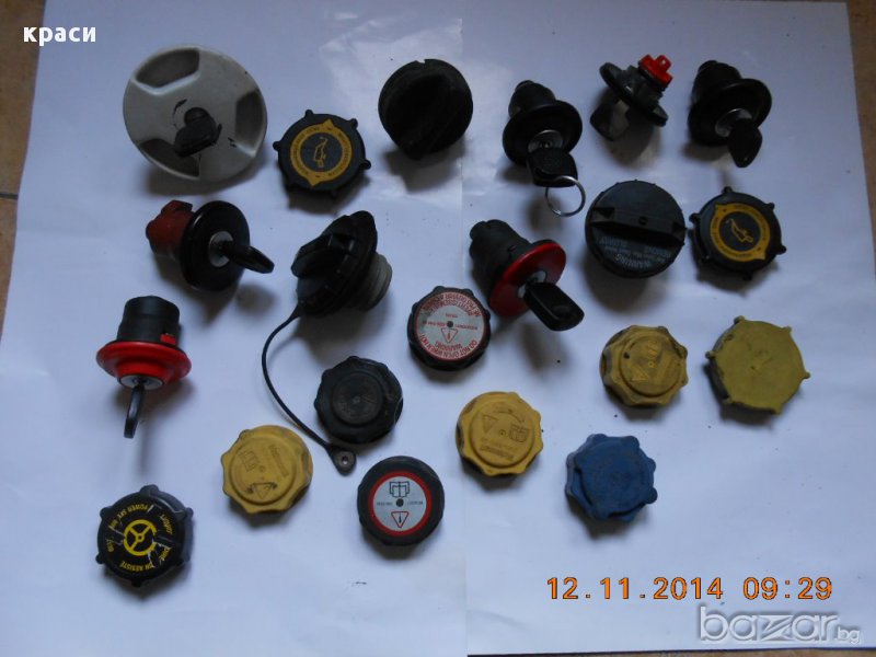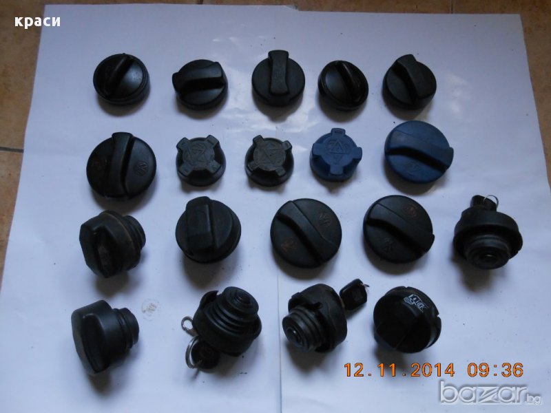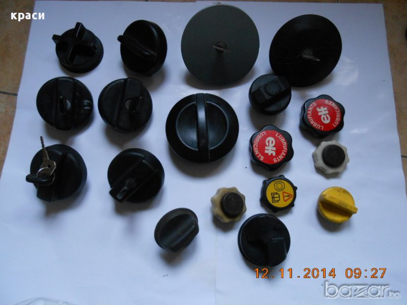 оригинални капачки за опели астра ф-г/вектра а-б/корса а-б/тигра а/калибра/кадет/омега а-б за резервоар -10лв /с ключ -15лв // двигател / антифриз -10лв ::: фв голф 3/венто-пасат 2/3 / сеат ибиза-толедо-кордоба / ауди - резервоар -10лв / с ключ -15лв / двигател / антифриз -10лв ::: форд ескорт/орион/фиеста/мондео- резервоар с ключ -15лв / двигател / антифриз -10лв ::: рено лагуна/меган/туинго/сценик/клио/еспейс/19/21/25 - антифриз / резервоар без ключ -10лв --- с ключ -15лв ::: рено 19 / меган / лагуна - двигател -10лв ::: капачка р-р с ключ от пежо 306 кабрио 98г -15лв :::рено туинго двигател -10лв / за рено клио и рапид 93г за резервоар външна с ключ -15лв /// рено сафран двигател -10лв ::: мерцедес 124 - резервоар -10лв / съд антифриз / двигател -10лв ::: шкода фелиция/фаворит - антифРиз -10лв ::: фиат браво/брава/мареа - РезеРвоаР -10лв / с ключ -15лв / декоративна външна бяла/бордо -20лв ::: ланчия либра за двигател -10лв / за резервоар без ключ дизел -10лв / с ключ -15лв ::: бмв е30/е32/е34/е36/е39 - резервоар без ключ -10лв - с ключ -15лв / антифриз -10лв ::: алфа ромео 145/146/156 двигател -10лв / антифриз - 10лв ::: деу матиз - двигател -10лв ::: нисан/мазда/хонда/субару/мицубиши - резервоар / антифриз -10лв :::