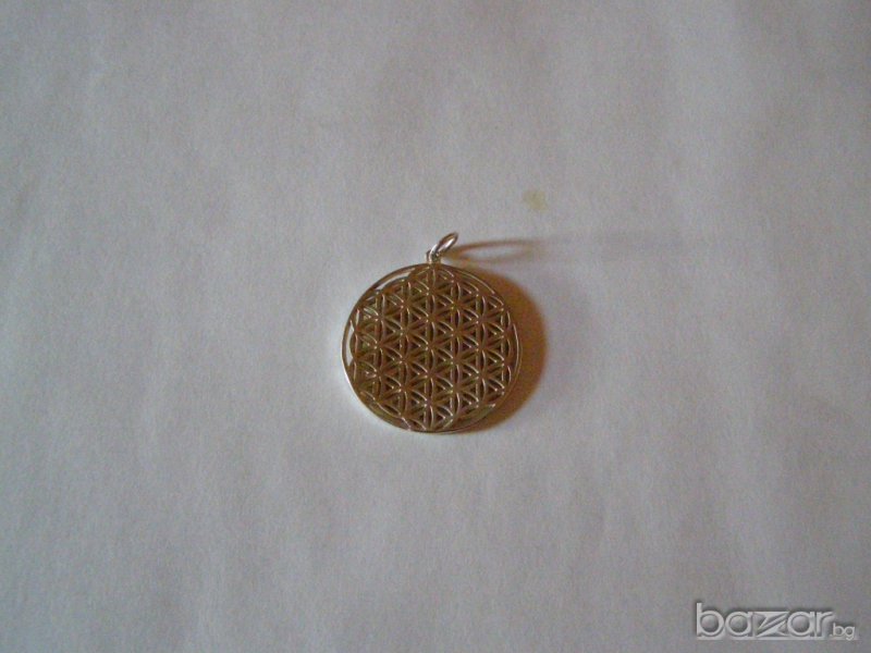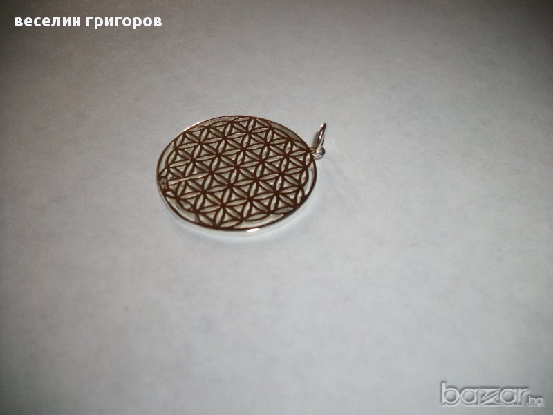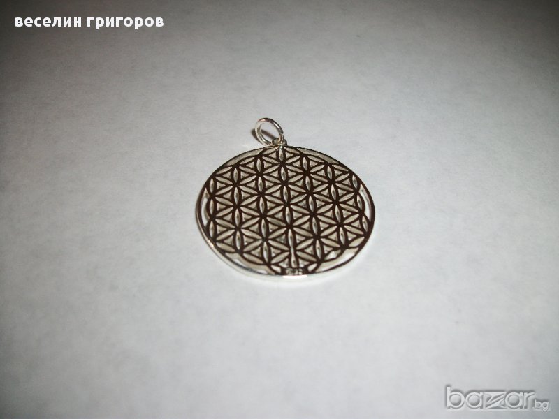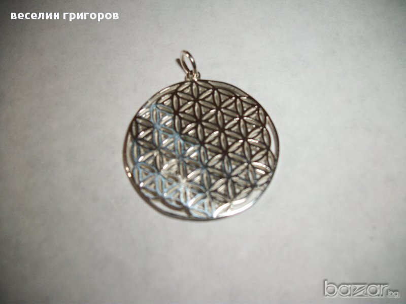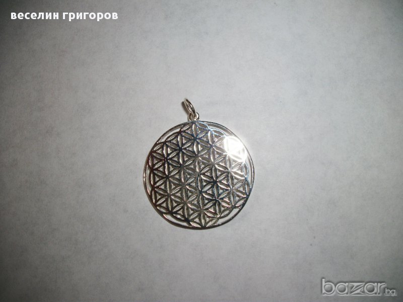 висулката представлява символа"цветето на живота"тежи 5.5.грдиамтъра е 2.8см.пробата на среброто е 925
