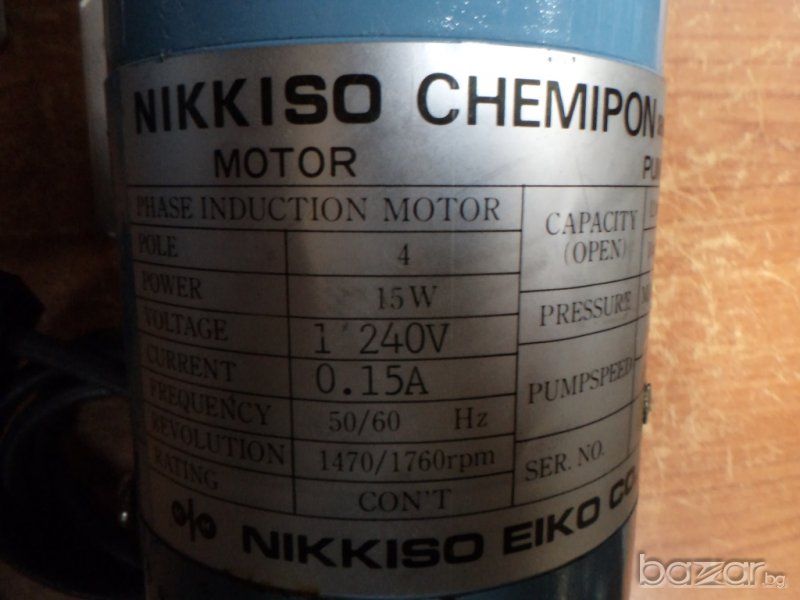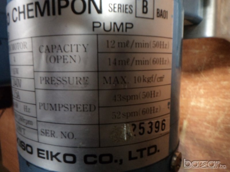 3бр нови японски дозиращи киселинно-устойчиви помпи произведени от NIKKISO EIKO CO, LTD. Параметрите са визуализирани на снимките.