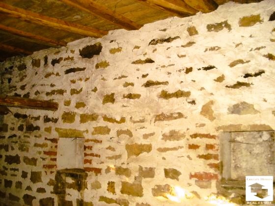 Първият етаж включва антре, дневна, кухня, баня и маза, и се нуждае от ремонт, а старите дървени дограми от подмяна.