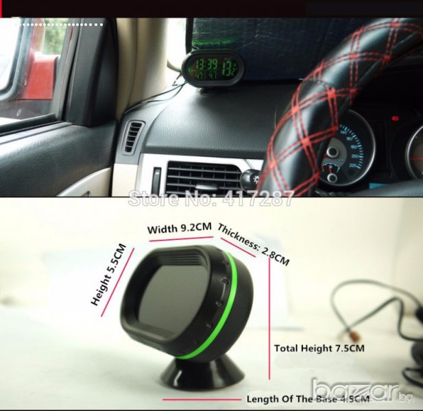 електронен термометър волтметър часовник за автомобил → Обява 6427343