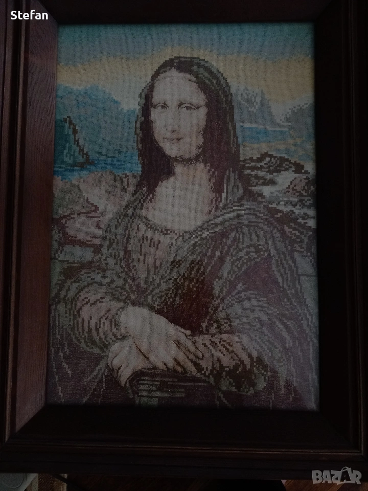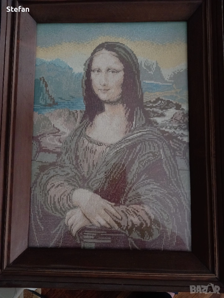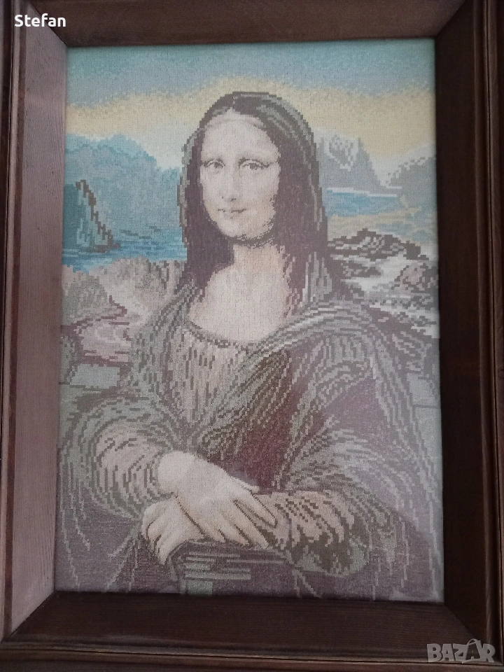 Оригинален гоблен "Мона Лиза" - в масивна дървена рамка - професионално ушит с DMC конци - 56 / 41 см. Крайна цена.