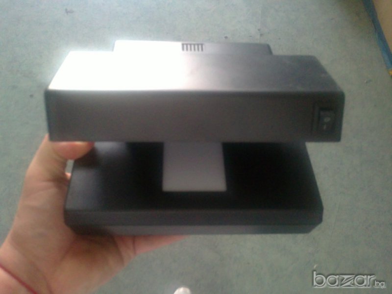 НОВ Детектор тестер за разпознаване на фалшиви банкноти, работещ с ултра-виолетова светлина. Съвместим с изискванията на БНБ, и абсолютно безвреден за хората с дължина на вълната - 365нм. Детектор тестер за разпознаване на фалшиви банкноти е задължителен уред за всеки търговски обект или офис, който работи с пари. С него може да засечете фалшивите пари преди да е станало късно! Детектор тестер за разпознаване на фалшиви банкноти служи също за проверка на кредитни карти (Visa, MasterCard, Diners), дебитни карти Visa Electron, паспорти, лични карти, билети, чекове, документи и всичко друго, което има скрити защити с флуоресцентни знаци, видими само под UV светлина. Детекторът използва лампа с ултра-виолетова светлина, за да засече флуоресцентните защити на парите, всички левови, евро и доларови банкноти имат защити, които са видими само под UV светлина.