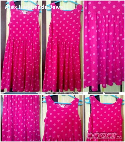 12. Цена 1 евро. Рокля H&M - розова на точки. Без забележки. 100% памук, трикотажна е. По етикет е размер 6-8 г./122-128 см. Дължина: 72,5 см.; мишници: 31,5 см.