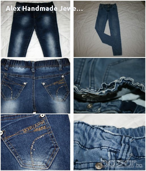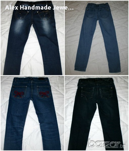 4. Цена 0,50 евро. Слим дънки Perrests /тъмен деним/. 85% памук, 13% полиестер, 2% еластан. Цвят много тъмно син. Леко избеляване на коленете, няма други забележки, материята е в перфектно състояние. Размер 128 см. Дължина:78/58,5 см.; талия с ластик и копчета за корекция: максимум до 34 см.; ханш: от 36,5 до 41,5 см.