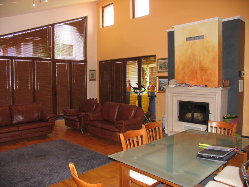 Нова фамилна къща на два етажа с РЗП 320 кв.м., в горната част на с.Белащица. Дворното място е 750 кв.м. Къщата е напълно обзаведена и се продава с мебелите, които се виждат на снимките. Дневната с трапезарията и кухненската част са с площ от около 65 кв.м. и височина на тавана в единия край - 4,50 м. Има 3 спални с 3 бани и WC. Отоплението е локално парно комбинирано - природен газ и камина с водна риза, климатици във всяка стая. Има два гаража с топла връзка към къщата. За огледи: Борислав Стоянов - 0898 774411