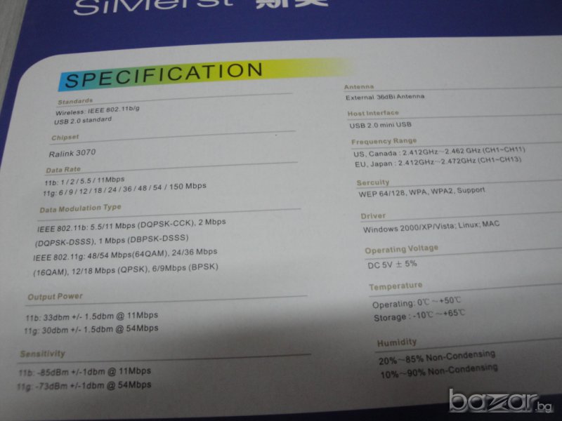 Технически характеристики и данни на Мощен Усилвател, крадец на безжичен интернет Wi-Fi сигнал СиМерст модел СН – Н5000 :