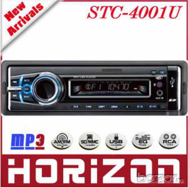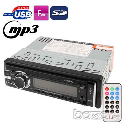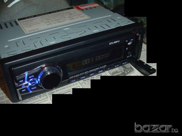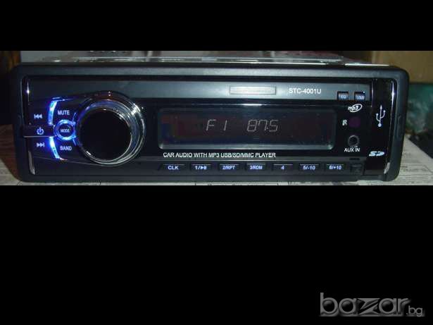 Радио, Четец на карти, AUX и USB портове. Музиката е нова, напълно функционална и работеща перфектно с всички USB флашки, SD и MMC карти за памет, това е аудио устройство, което може да плейва формати MP3,WMA и други. Има цветен дисплей с добра резолюция. Музика за кола модел МП3 – STC 4001U с МП3 е многофункционално устройство на евтина цена и много добро качество . Ако желаете музиката може да бъде с монтирана ЕВРОБУКСА / това Ви спестява монтаж 10-15лв./ - цена 24,00лв.