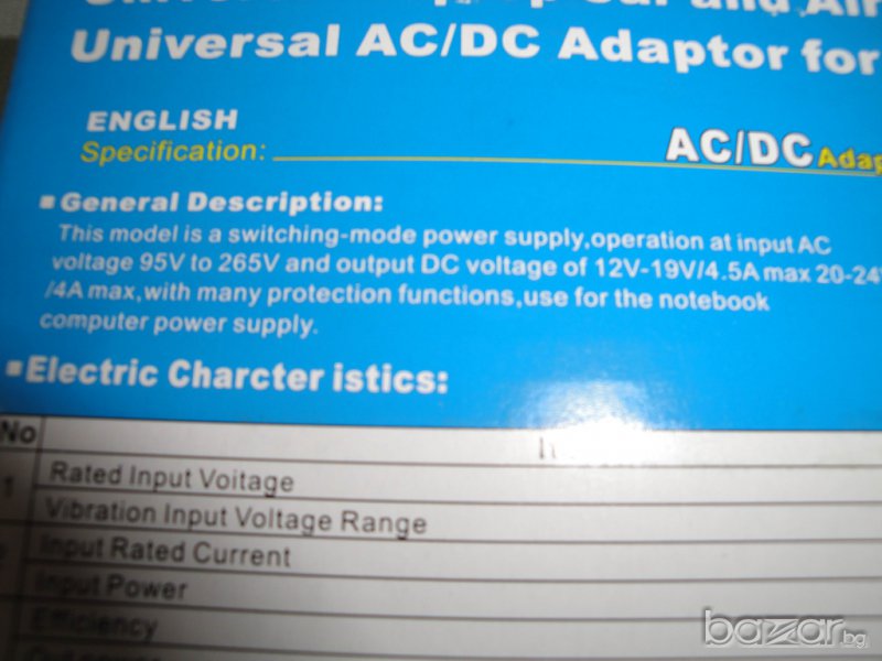 НОВО Универсално зарядно за лаптоп, ноутбук, таблет и друго е пълен комплект и има 8 размера зарядни букси (В комплекта няма букси за лаптопи модел DELL и APLE). Супер универсално зарядно за лаптоп, ноутбук, таблет и друго е в метален корпус за по-лесно топлоотдаване, на много изгодна цена и добро качество, с мощност 96 Вата. Универсалното зарядно устройство е произведено в Континентален Китай.