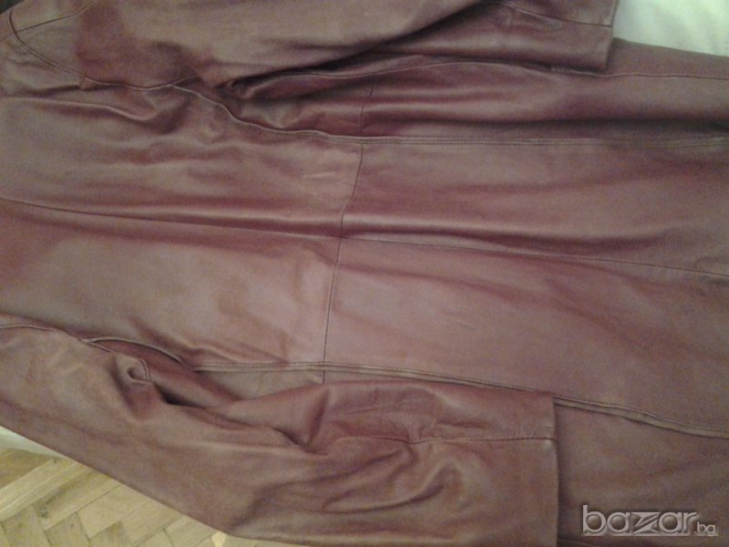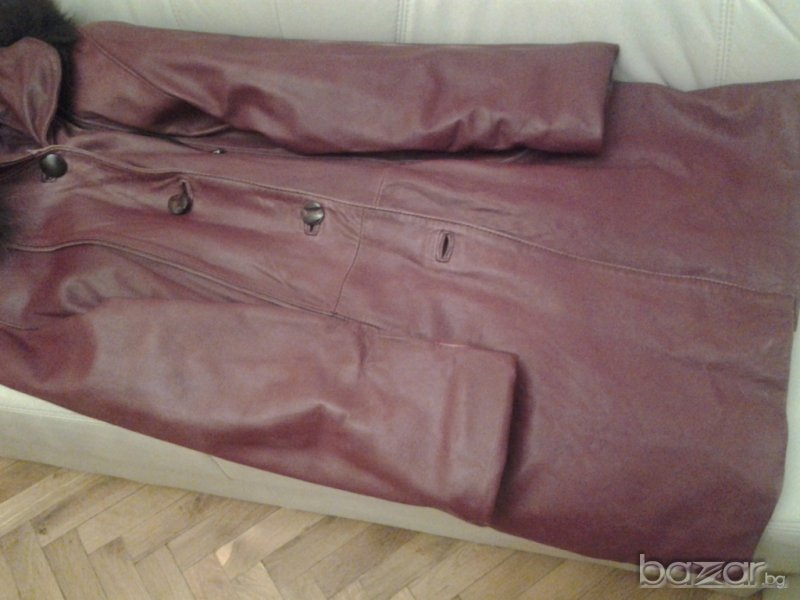 Продава се дълго дамско кожено яке в тъмно червен цвят –бордо изискан, модерен и лесен за съчетаване.