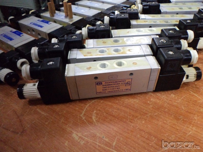 Нови български пневматични разпредилители 5/2 тип: ESPA 05L. Управление: 24V DC. Даденият разпределител върви в комплект с два гаситела. Разполагаме с 20 комплекта на склад