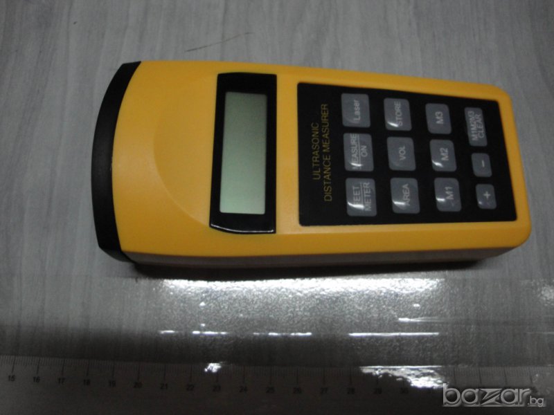 НОВА Лазерна ултразвукова ролетка модел УЛТРАСОНИК, метър , уред за измерване с немска прецизност и качество . Електронните Цифрови ролетки са чисто нови в оригинални фабрични опаковки и са 100% тествани с гаранция. Възможност за измерване до 18 метра , с отклонение „+-„ 0,03см . Уреда е предназначен за безконтактно дигитално измерване на разстояния с помоща на ултразвук. С помощта на вграден чип-компютър веднага се пресмятат площта и обема на измерваната площ. Мястото на измерване се фиксира с помощта на лазерен лъч. НОВА Лазерна ултразвукова ролетка модел УЛТРАСОНИК е многофукционален, изключително удобен, бърз, точен и необходим за работа в строителството уред, за оразмеряване на помещения в домакинството, при ремонти , в озеленяването, при климатизацията, проектирането на терени, промишлени проекти, и др. НОВА Лазерна ултразвукова ролетка модел УЛТРАСОНИК - метър с висока точност и калкулатор на площ. Има три отделни памети за различни отчети. Автоматично изчислява площ - квадратура.