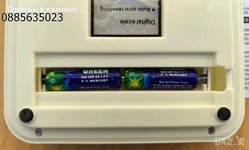 - Захранване: Батерии 2 х 1,5V тип АА (включени в комплекта), или DC 9V / 100 mA адаптер