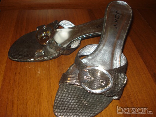 Елегантни дамски чехли, дължина на стелката 26,5см, височина на тока 4см. Обувани само за няколко часа и са добре запазени.