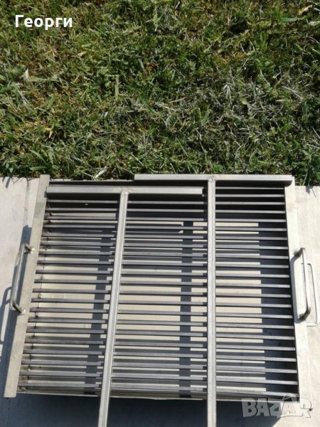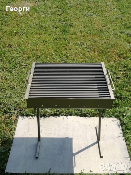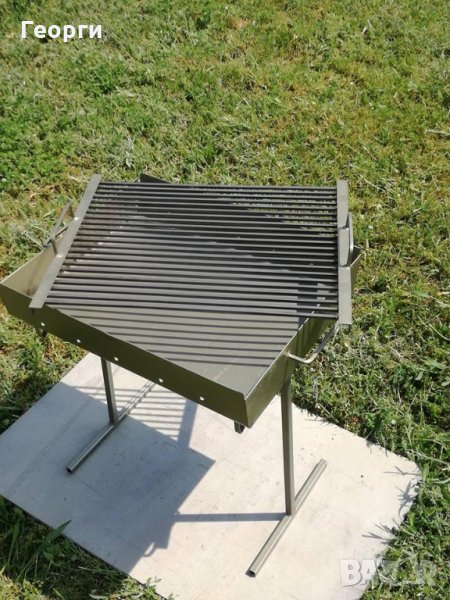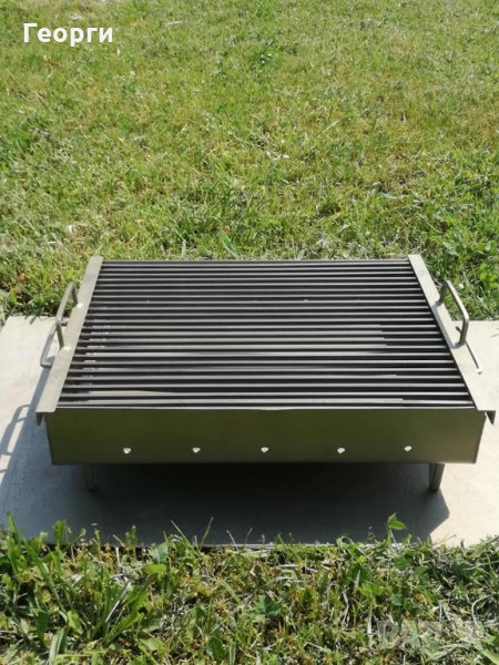 Дължина-50СМ, Широчина-40СМ, Обща височина с краката-60СМ, Дебелина на ламарината на тавата-2мм,оребрението на скарата е изработено от плътен квадратен профил с размери-6Х6мм!Краката се разглобяват и се събират в тавата за по-добра мобилност!Барбекюто тежи 10кг, компактно е и много лесно преносимо!За повече информация или за да поръчате моля пишете лично съобщение или позвънете на телефонен номер 0895716533.