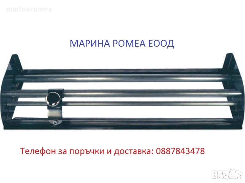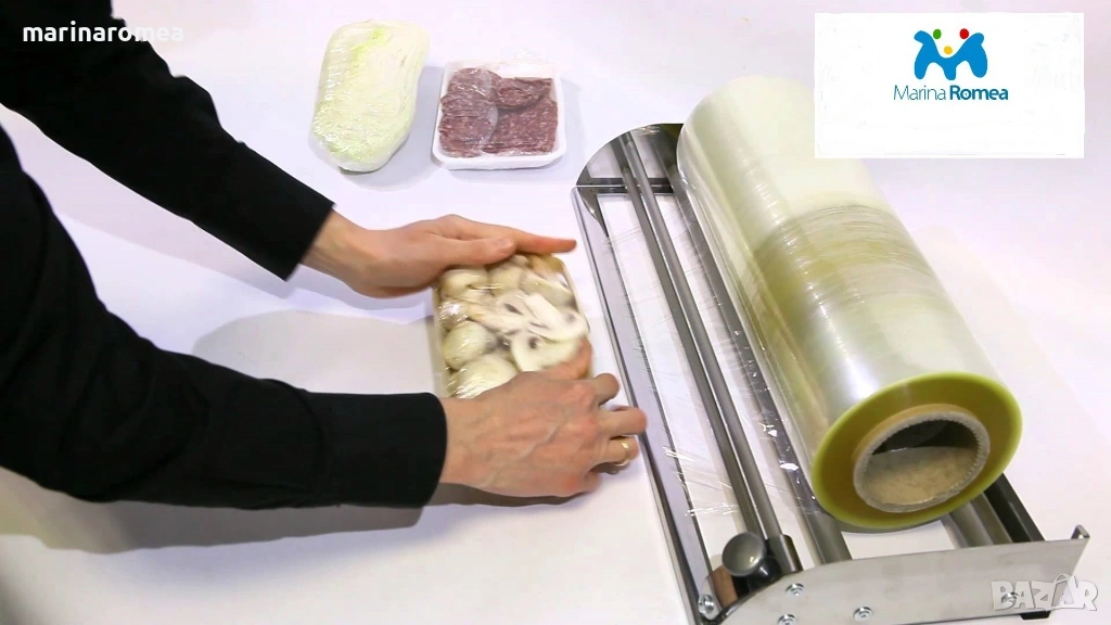Марина Ромеа ЕООД продава нови стойки за опаковане със стреч фолио изработени от неръждаема стомана. Стойката е снабдена с остър подрязващ нож, който се движи свободно. Благодарение на него опаковъчното фолио се отрязва с едно движение. След дълга работа и притъпяване на ножа, той може да се обърне и да се използва от другата страна на острието. Стойката с нож улеснява опаковането на хранителни или промишлени стоки с тънко фолио на ролка. При използването й се увеличава скороста и удобството при опаковането. Супер лека е с тегло под 1 килограм, което я прави лесна за обслужване и преместване. В конструкцията на стойките са проектирани и прорези, които дават възможност за монтаж на стена с винтове. Стойката се изработва от материали, които са: