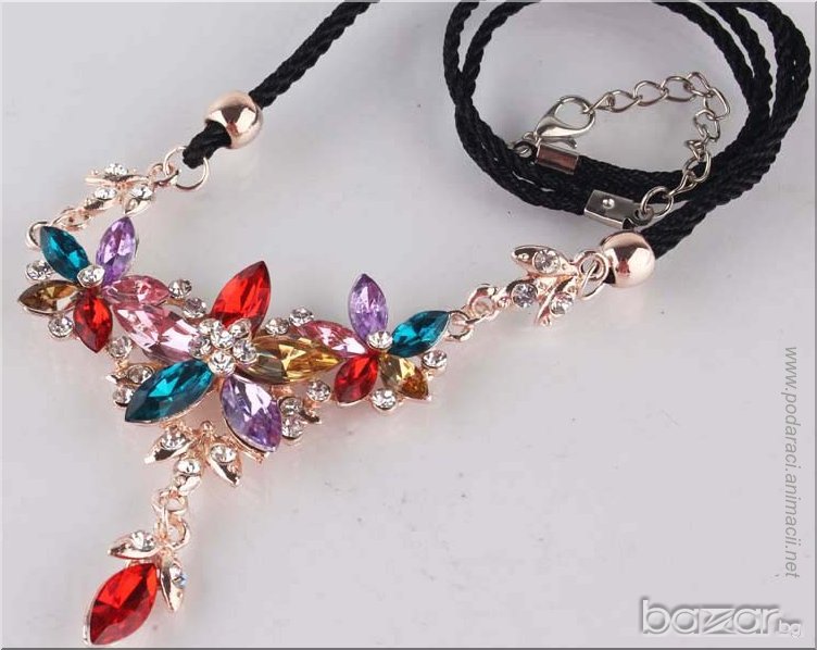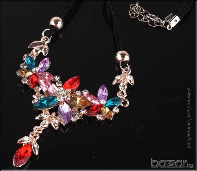 Колие с разкошни многоцветни австрийски кристали и 18 карата попълнено злато в металните части!