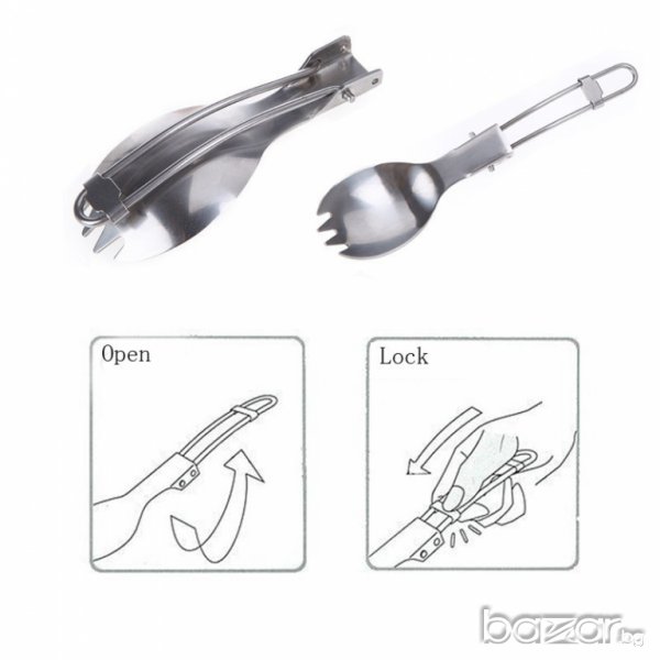 ориз или топла супа. Сгъваеми лъжица и вилица в едно! Отворете торбичката, разгънете и пред учудените и завистливи погледи на всички наоколо само за секунди ще сте готови да си хапвате културно и възпитано, все едно сте си у дома или дори в изискан ресторант ;-) След като се нахраните просто го сгънете и приберете обратно.