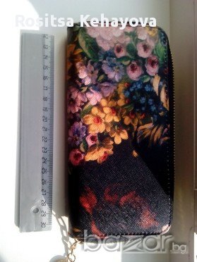 Дамска чанта с порфейл с цвятя красива стилна модерна → Обява 7162908