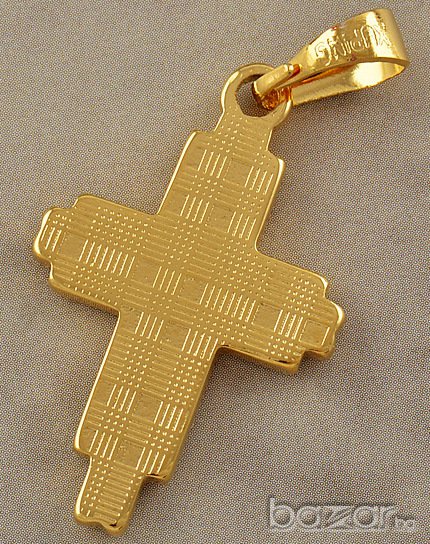 Кръстчето е ново, изящно изработено от 9к устойчиво златно покритие. Мнението на бижутерите за този начин на изработка, че практически по нищо не се различава от чистото злато и е със същите качества - блясък и устойчивост.