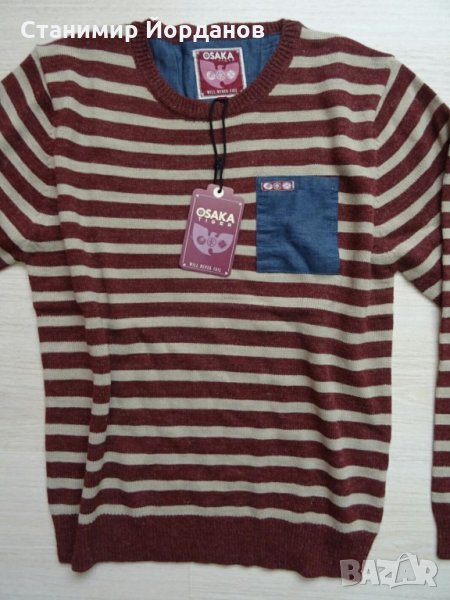 мъжки пуловер Osaka Tigersсъстояние - нови с етикетПоизведени в Бангладеш85% Acryl 15% Woolразмер L - широчина - 57 дължина - 71 смразмер XL - широчина - 60 дължина - 72 см