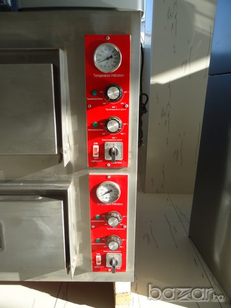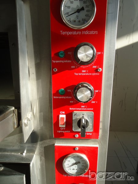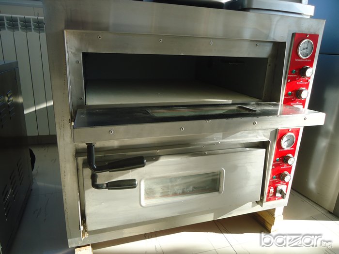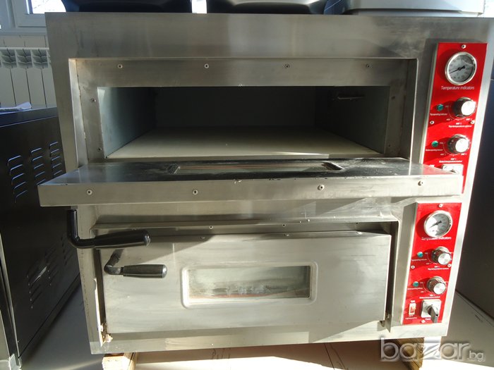 Фурна за пици със цял керамичен плот на две нива нова със гаранция една година,Вътрешни размери на площ за печене на камерата широчина от ляво на дясно 60см. на дълбочина 60см. на височина17см. Мощност 8.4 kw. 380V Трифазна , Градуси 500 C., Може и монофазна Външни размери широчина от ляво на дясно 95см. на дълбочина 72см. на височина 80см.Тел за контакт - 0877 / 553-254: 0896 / 206-754: 0877 / 533-907: 0889/087-999: 0988/382-103: 0892/97-56-96: Доставка по куриер на место до вашия град и офис..