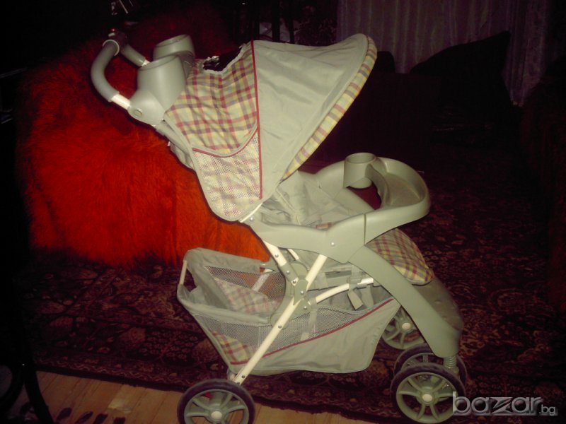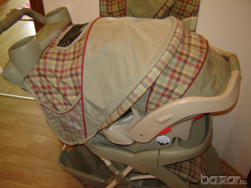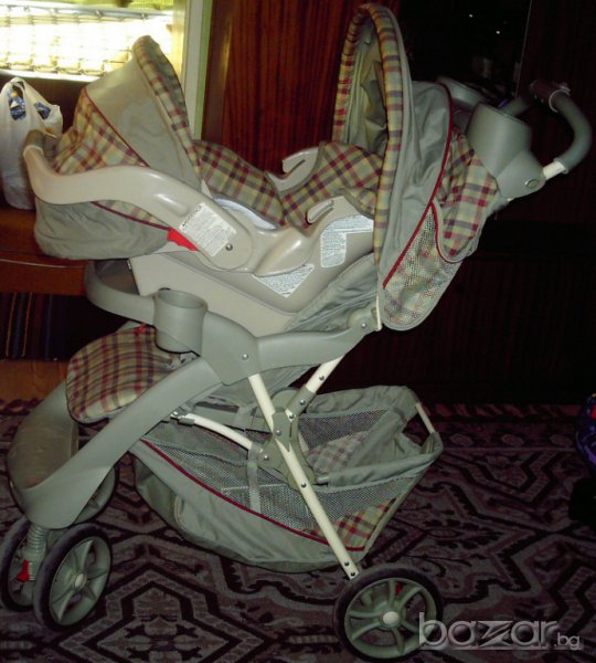 Комбинирана количка , закупена от САЩ, с кошница за новородено до 13 кг, голям кош за багаж, сгъване само с един бутон тип книга, висока, много удобна, запазена. Една количка от раждането до прохождането на детето. Подарък - покривало за дъжд.Изключително подходяща за есенно-зимно бебе, а когато вече стане на 6 месеца и започне да сяда се ползва летния вариант без коша.