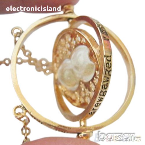 Времевъртът е колие с работещ а миниатюра на пясъчен часовник във вътрешният ротиращ пръстен. Позлатено колие със 18К златно покритие с диаметър 5.5см и синджир с дължина около 45см
