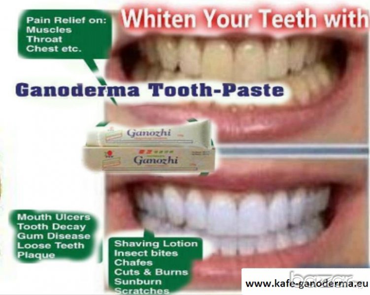 цял набор от други животозастрашаващи болести. Където четката за зъби не може да стигне, милиони бактерии бързо се размножават. Те влизат директно в кръвоносната система чрез кървящите венци, заобикаляйки първата линия на защита на тялото и всяват хаос. И без ранно лечение на възпалението на венците, прогнозите са за скъпи и неприятни хирургически намеси, и грижи за цял живот. Ако стоматологична помощ е скъпа и не е достъпна, или имате дентална фобия, това не е извинение да не се предприеме първата лесна стъпка - да започнете да употребявате Ганожи пастата за зъби.