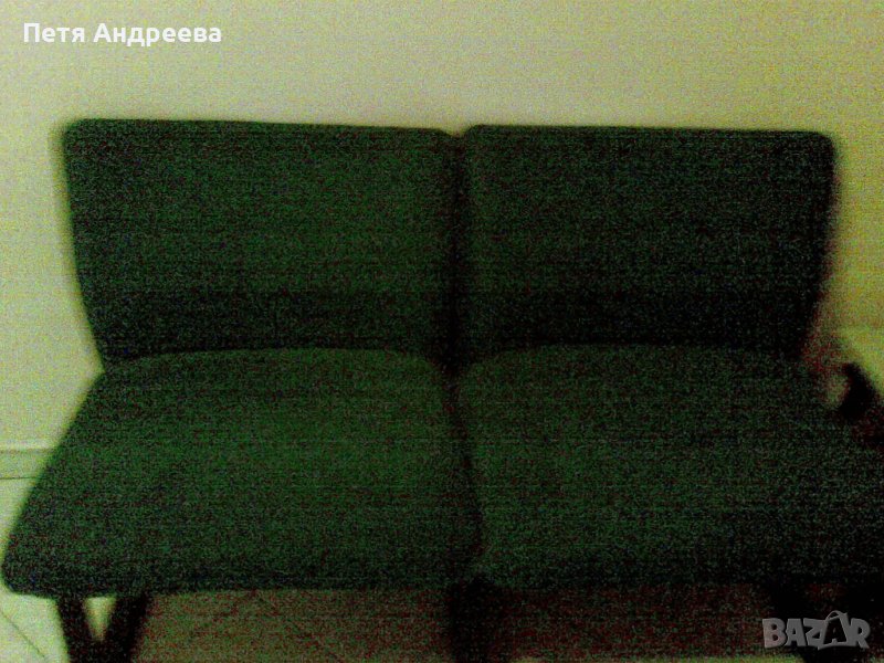 Холна гарнитура, състояща се от двуместно канапе и 2 фотьойла - почти нови. Италианско производство, висококачествена тапицерия флок (тип велур), цвят изумруд, черни метални крака. Височина 75 см., ширина 54 см. Канапето е с дължина 125 см, ширина 54 см височина 75 см.