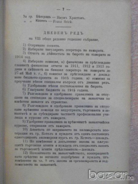 1. VІІІ общо редовно годишно събрание на Бургазката Търговско-Индустриална Камара отъ 10 до 18 Декемврий 1914 год. / Съкратени протоколи / - 80 стр.
