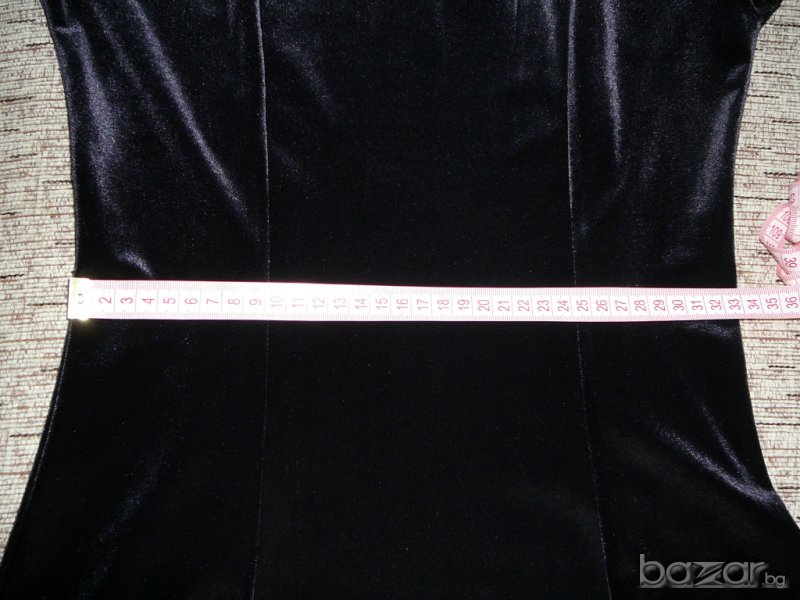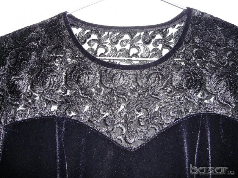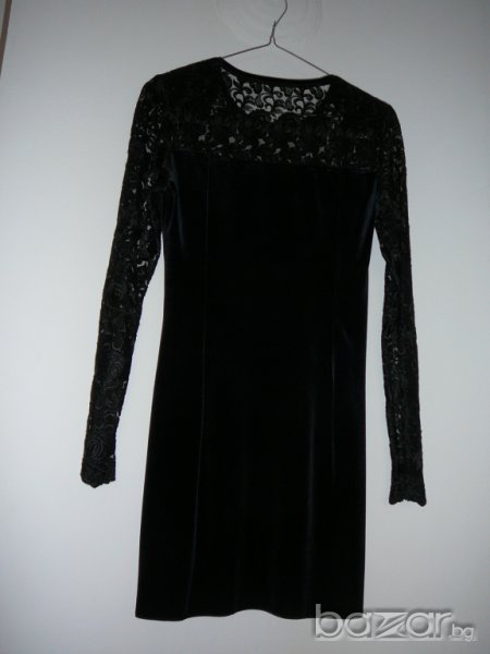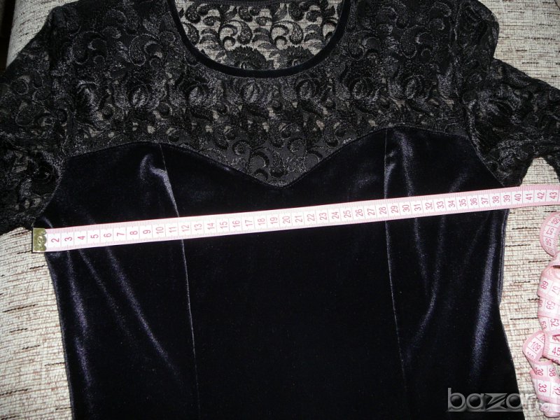 Роклята е обличана само един път. В отлично състояние! Много тъмно син цвят е. Дантелата не е еластична, другата част е плат като кадифе леко еластичен. Материята не е дебела и не прозира.