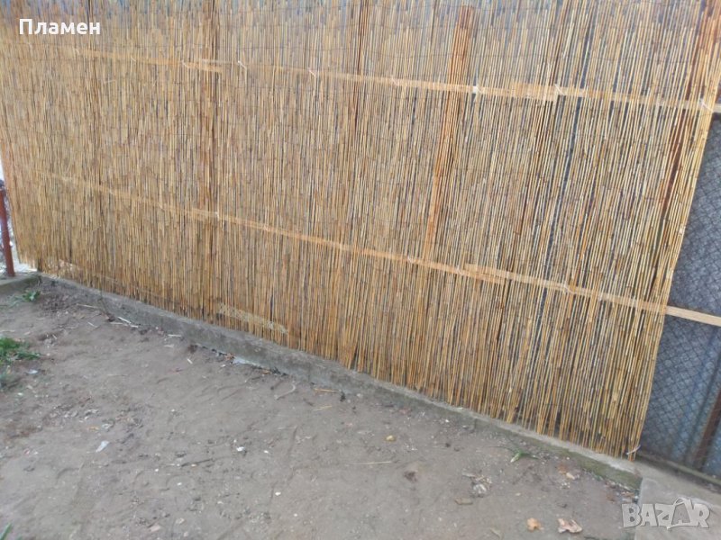 Техническа информация: оплетен с метална галванизирана тел, която свързва тръстиковите пръчки, които са с дебелина на сламка. На снимките са показани.