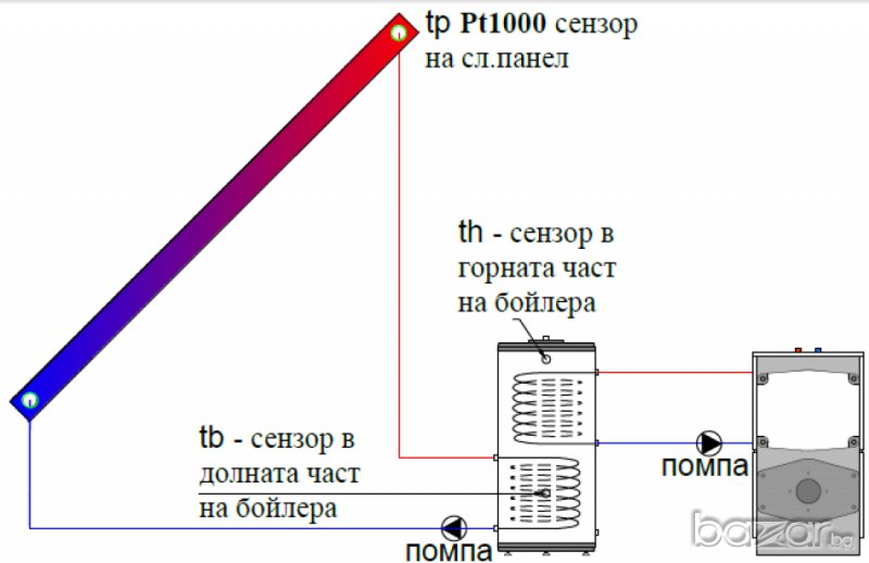 - 3 входа за термосензори – един за измерване температурата на слънчевия панел и два за измерване температурата в акумулиращия бойлер;
