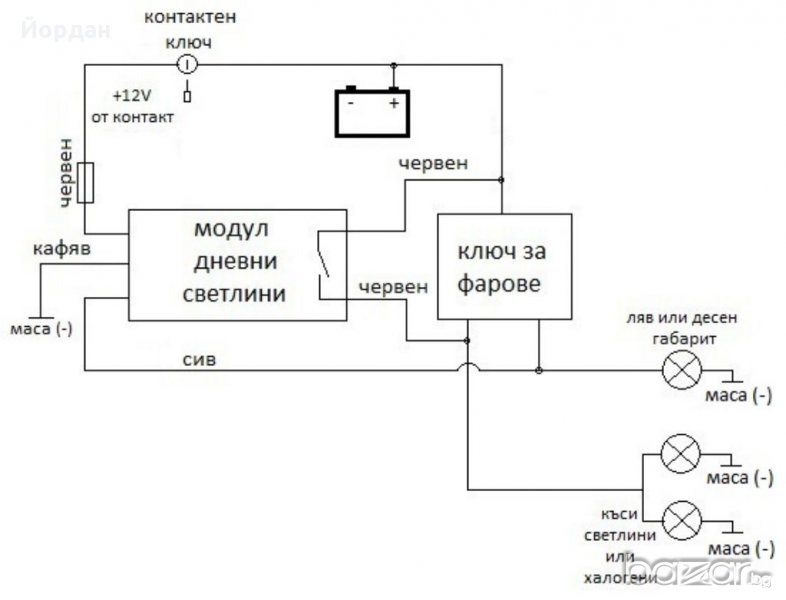 Работата на модула се състои в това, автоматично да включва късите светлини или халогените, когато се стартира двигателя, и автоматично да ги изключва при изключване на двигателя. По този начин модулът ви предпазва от глобите на КАТ, както и от изтощаване на акумулатора. При ръчно включване на фаровете модулът се самоизключва.