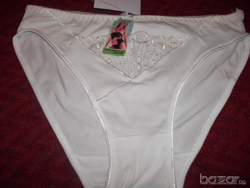Нови дамски бикини от ликра. Различни цветове - бял, бананов, розов, светло син и черен. Цена за брой 2,20лв