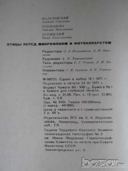Книга "Птицы перед микроф. и фотоапар.-А.Мальчевский"-208стр → Обява 7815443