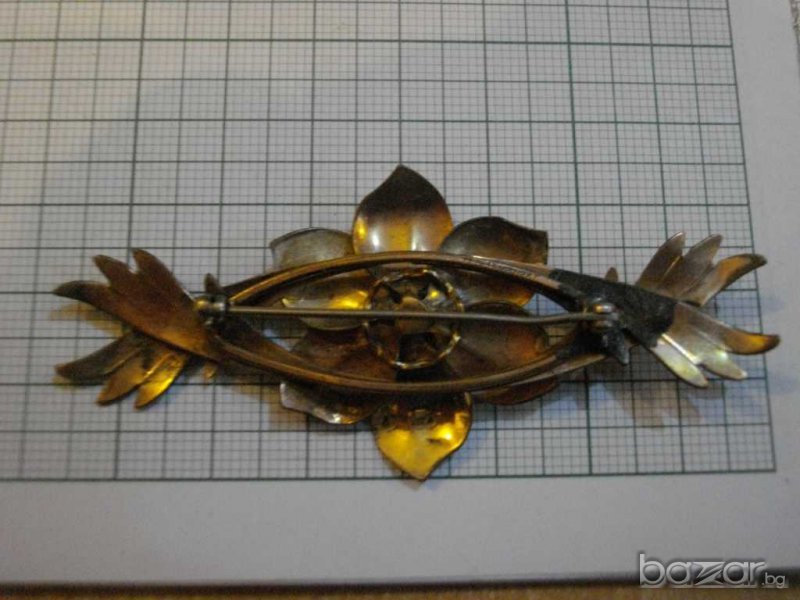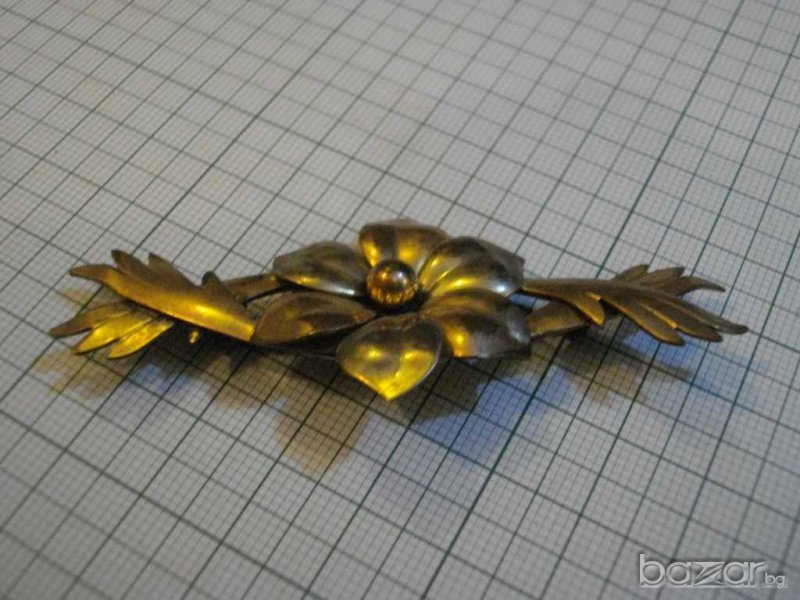 Брошка позлатена метална с цветче в средата / 8,2 гр. / → Обява 7815676