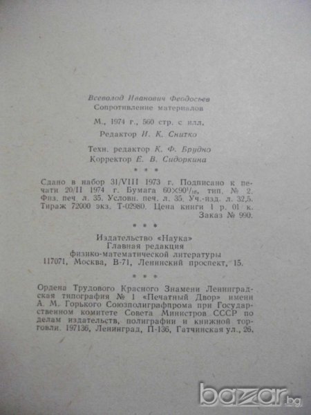 Книга "Сопротивление материалов - В.И.Феодосьев" - 560 стр. → Обява 7829222