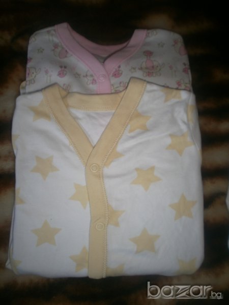 Пижамките са нови, 100% памук, много мека и приятна на допир материя, хубаво, плътно трико, има и еластичност. Поръчани от Англия. По етикет за 12-18м, отговарят си на номера.