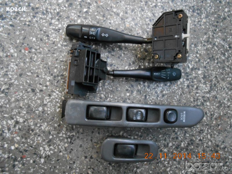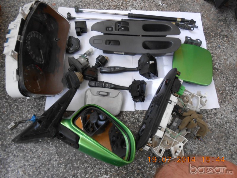 митсубиши колт 1,6 16в 90кс 99г :::: конзола парно/климатик -30лв / декоративен панел с копче аварийни -10лв / часовник -15лв ::: лостчета фарове-мигачи и чистачки -30лв бр /// стопове 00г -40лв бр /// фарове -40лв бр -продадени // само десен халоген -35лв // десен мигач -15лв // копче ел. огледала -15лв / други копчета -10лв бр ::: копчета ел. стъкла шофьорски -30лв // централен плафон -7лв ::: капачка РезеРвоаР -5лв / капачка двигател -10лв / декоРативна външна -10лв ::: дясно ел. огледало черно -25лв / зелено с пукнато стъкло -25лв ::: гофриран маркуч -20лв ::: преден десен мигач -10лв ::: десен стоп 97г -30лв /// амортисьори багажник -47см -30лв к-кта ///////////// мицубиши колт 95г лостчета светлини и чистачки -25лв бр ::: копчета ел, стъкла шофьорска врата -30лв / пасажерска -10лв ::: амортисьори багажник -46см -30лв к-кта