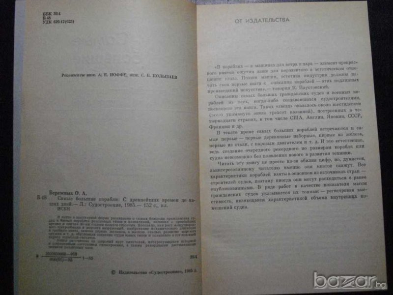 Книга "Самые большие корабли - О.А.Бережных" - 152 стр → Обява 7905289