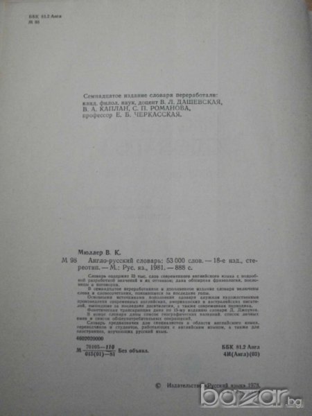 Книга ''Англо - руский словарь'' - 887 стр. → Обява 7911439