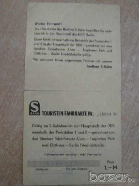 S bahn - TOURISTEN FAHRKARTE → Обява 7966170
