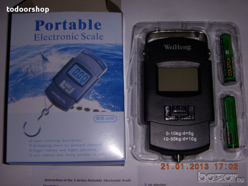 Домакински кантар/везна за измерване на продукти. Кантарчето е електронно с дисплей, кука за закачване на измерваните продукти. Работи с батерии 1,5v ААА 2бр. /включени в комплекта/. Точност на измерване 5гр.