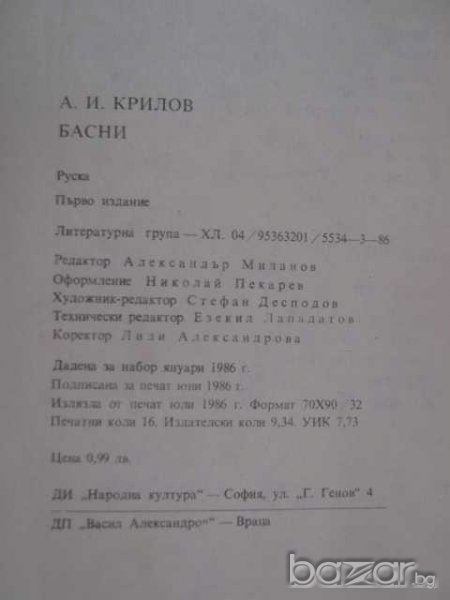 Книга "Басни - И.А.Крилов" - 256 стр., снимка 1 - Художествена литература - 8002255 Книга "Басни - И.А.Крилов" - 256 стр., снимка 2 - Художествена литература - 8002255 Книга "Басни - И.А.Крилов" - 256 стр., снимка 3 - Художествена литература - 8002255 Книга "Басни - И.А.Крилов" - 256 стр., снимка 4 - Художествена литература - 8002255 Книга "Басни - И.А.Крилов" - 256 стр., снимка 5 - Художествена литература - 8002255 Книга "Басни - И.А.Крилов" - 256 стр., снимка 6 - Художествена литература - 8002255 Книга "Басни - И.А.Крилов" - 256 стр., снимка 7 - Художествена литература - 8002255 1/7