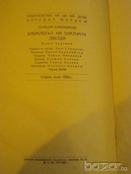 Книга "Кавалерът на златната звезда-С.Бабаевски" - 612 стр. → Обява 8020079