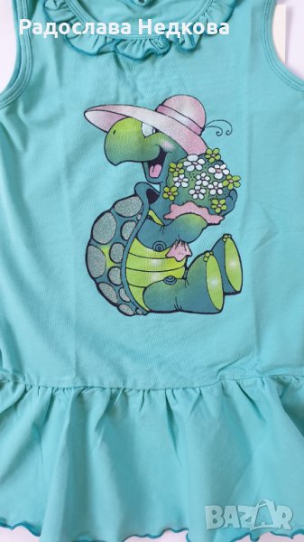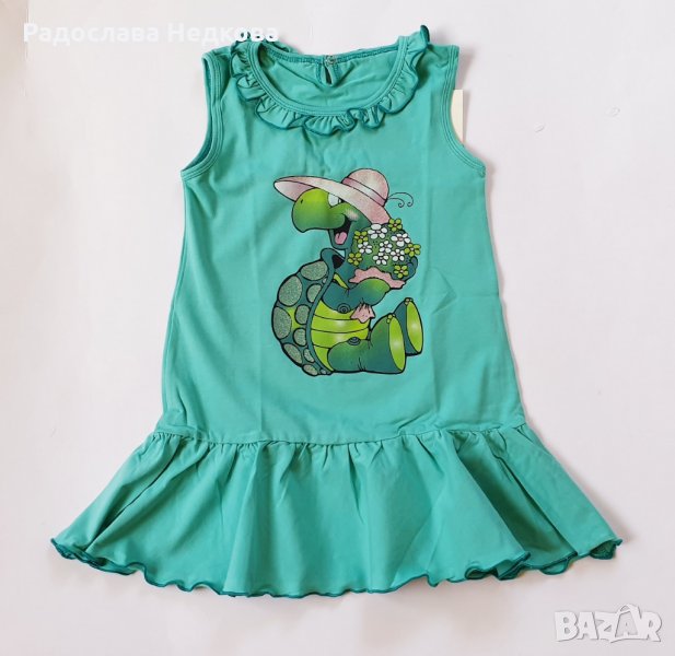 Страхотна памучна рокличка за момиче с апликация на костенурка. Българско производство! Налични размери и цветове: